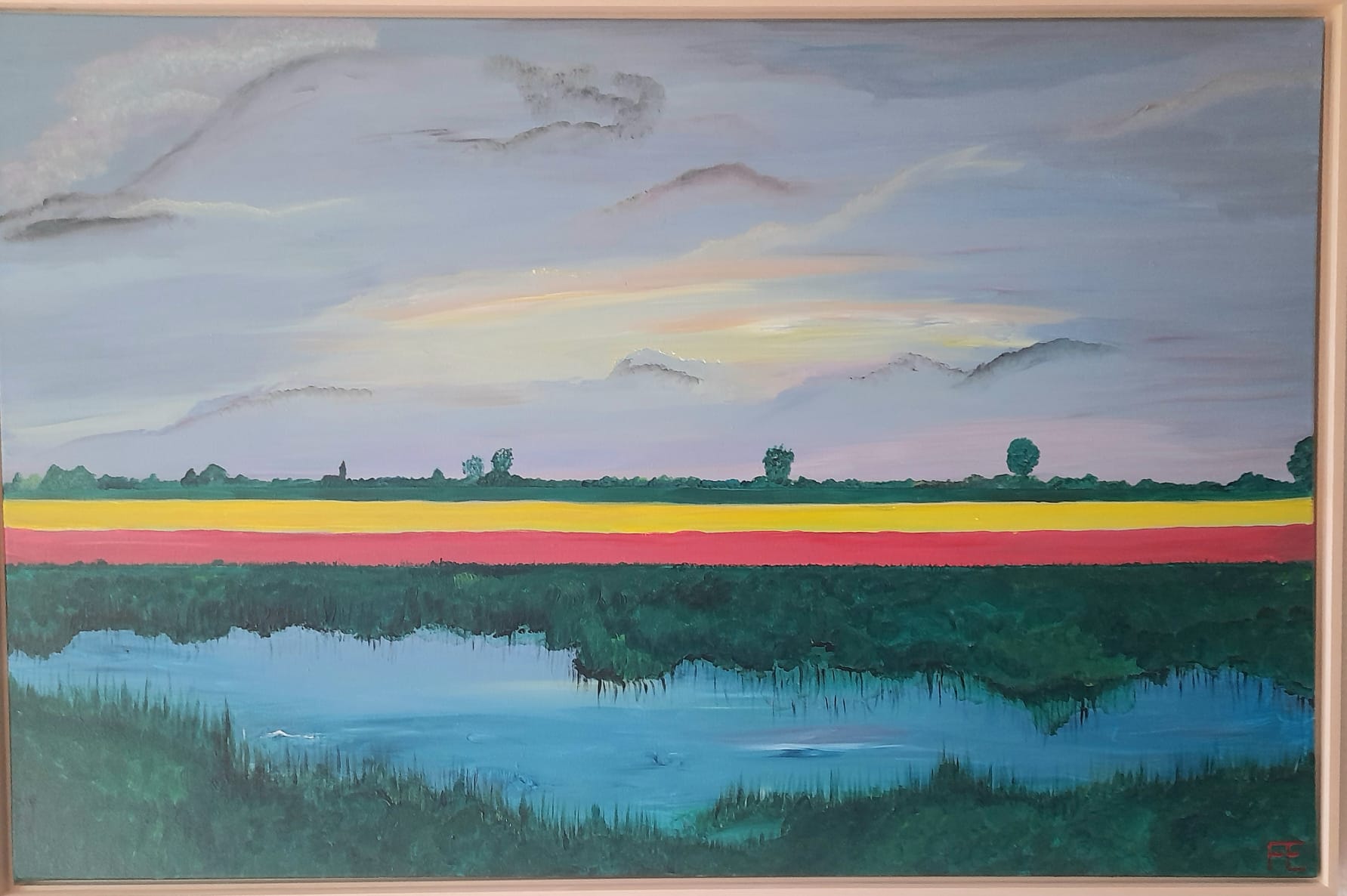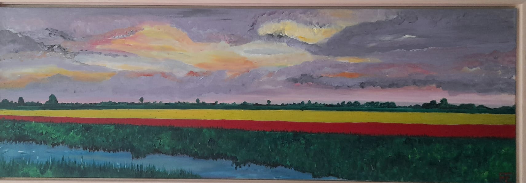 Ik schilder grotendeels met 3 primaire kleuren als uitgangspunt, aangevuld met zwart en wit.